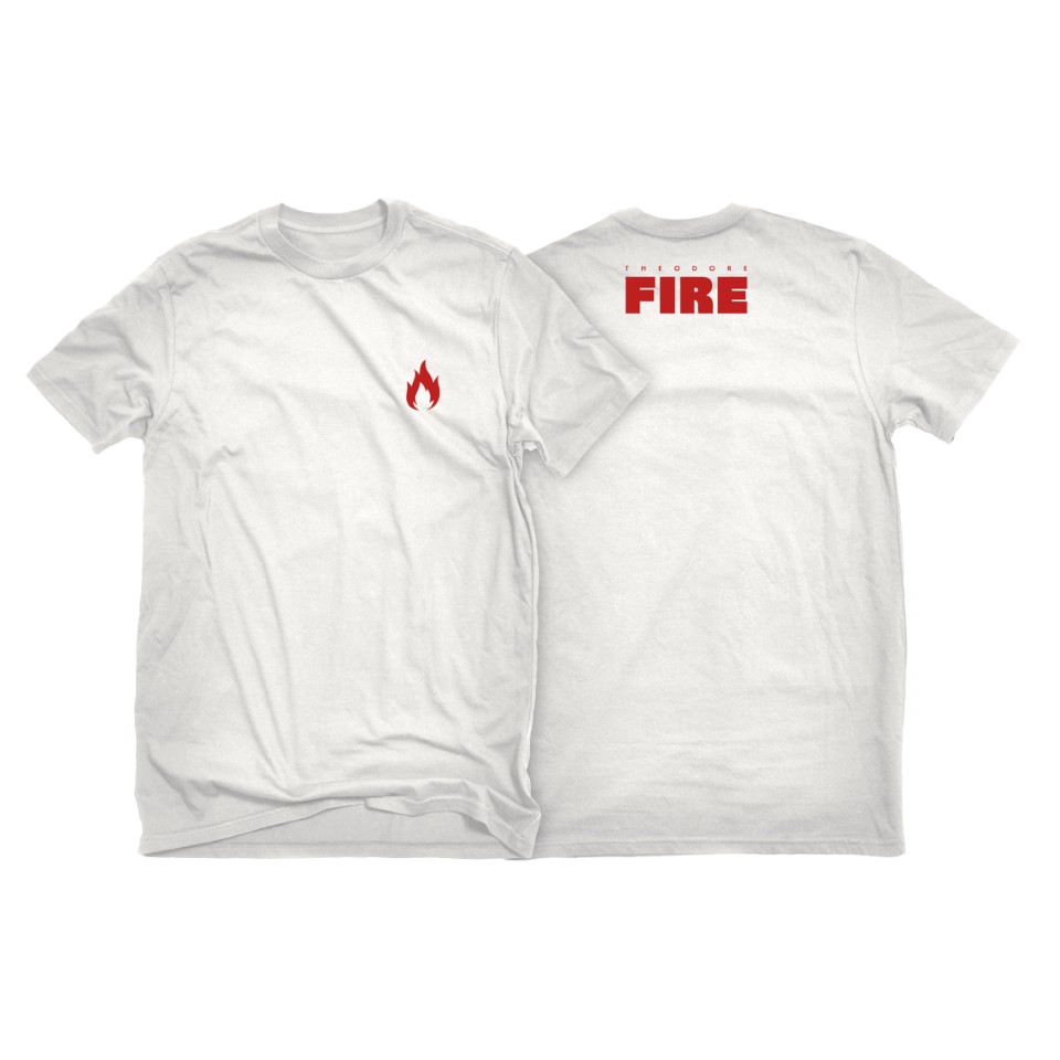 “FIRE” artwork single-color screen-printed on regular off-white fit unisex Continental 155g t-shirts 100% organic cotton, PETA-vegan approved, climate Neutral, Fair Wear
